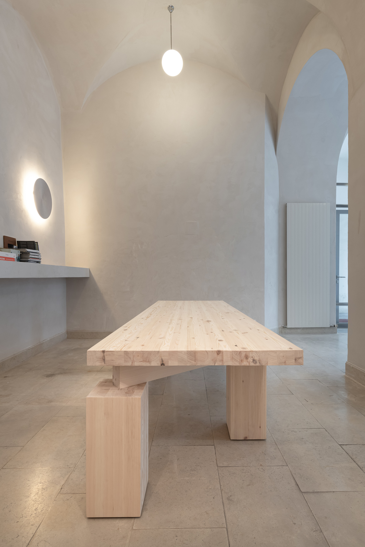 The wien table was originally designed and manufactured for an architecture office's new space in Wien. The sculptural shape and the large, robust, but simple building blocks resembles the basic idea of architecture. Due to the large size, it could be used for large meetings, workshops or for working.